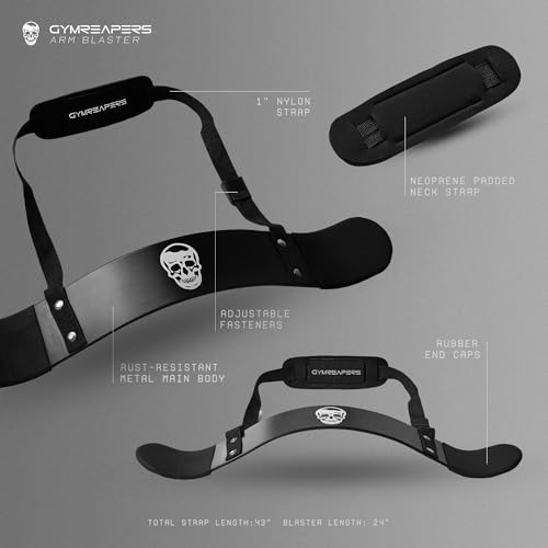 GET BIGGER ARMS WITH BETTER ISOLATION – Gymreapers arm blaster is the industry standard posture supporting tool for your arm workouts. The blaster supports your body by forcing you to tuck your elbows by your side, enabling proper posture while isolating your arms when weightlifting and bodybuilding. With our trademark skull logo and all black color our arm blaster is a must have in your training arsenal.