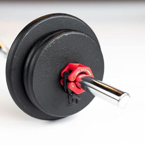 Body-Solid Tools Lock Jaw Hex Collars – Quick-Locking Latch Barbell Clamps, Ideal for Olympic Barbells and Weight Lifting Bars, Secure and Durable for Home and Commercial Gym, 1″ Collars Pair, Red
