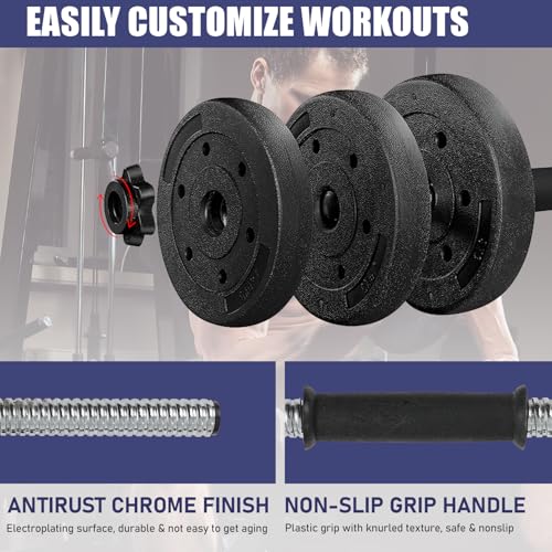 Anti-Slip Design: Quality PVC grips produce good force friction and meanwhile add comfort and safety to your experience. The surface of the dumbbell piece is made with wear-resistant treatment, which is resistant to drop and abrasion, and durable. Weight plates covered with plastic to avoid causing damage to the floor, suitable for home use.