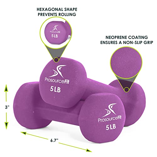 ProsourceFit set of two Neoprene Dumbbells are ideal for helping you get started with strength training and for improving your fitness. Strengthen and sculpt muscles with soft coated dumbbells that are gentle on hands and prevent callouses, yet provides a non-slip grip for optimal performance and safety. Perfect for group training classes, personal training, and at-home workouts, the protective coating is safe for floors, and the hexagonal shape prevents the weights from rolling around when you set them down. Color-coded weights help you easily eye the right weight for the exercise you’re performing. The lighter weights can be used while walking and for physical therapy, as well as general toning. Heavier weights are great for exercises like shoulder presses, bicep curls, weighted lunges, triceps extensions, chest presses, weighted squats, and much more!