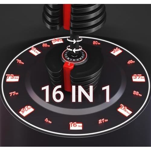 16-IN-1 ADJUSTABLE DUMBBELLS:This dumbbell set spans a wide weight range from 4 lb to 90 lb in diverse and smaller increments to facilitate gradual resistance, intensity, or volume adjustments.