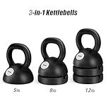Adjustable Kettlebell Weight Set: 3-in-1 Kettlebells (5lbs 8lbs 12lbs) for Home Gym Full-Body Workout Strength Training Weight Loss | Good for Beginners