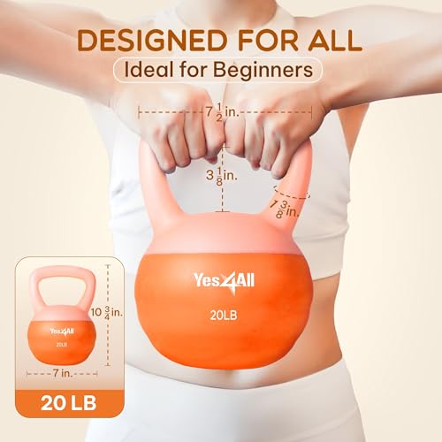 Yes4All Soft Kettlebell, PVC Kettlebells Exercise Weights & Color-Coded Strength Training Kettlebells with 4 Options (5,10,15,20lb), Gentle Hand Weights for Women at Home