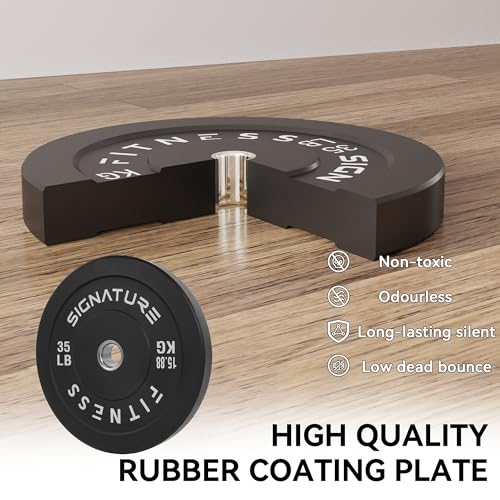 100% VIRGIN RUBBER – LOW ODOR AND BOUNCE – Signature Fitness Bumper Plates contain NO recycled rubber. This means low to no odor, guaranteed durability, and low “dead” bounce for safety.
