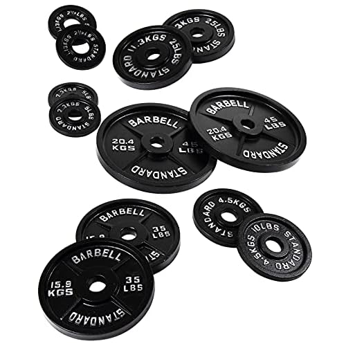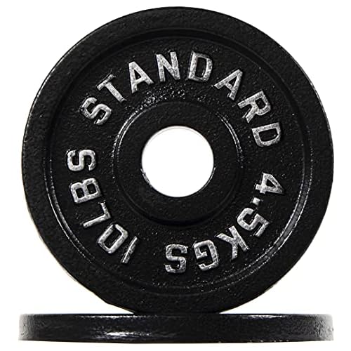 Made of solid cast iron with a 2-inch center hole fits any Olympic bar with diameter 2” or less; Can be used with 2” dumbbell bars too
