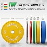 Construction: Each plate boasts IWF standard 450mm / 17.72 inches in diameter, and thickness varies by weight – thinner width than most comparable plates on the market, enabling more weight to be loaded on the bar.