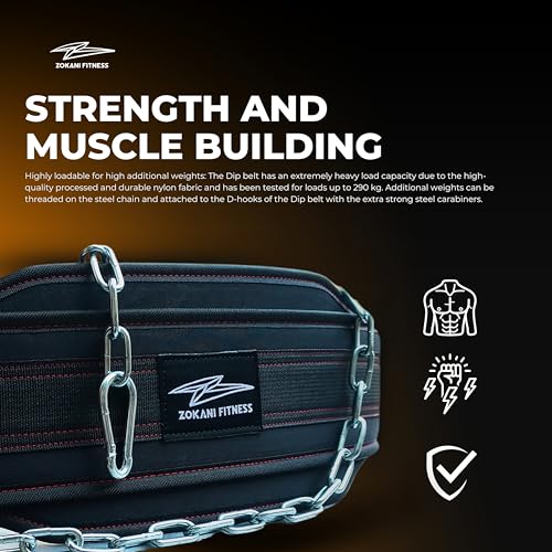 Hold weights up to 800lbs Zokani Dip Belt with Chain for Heavy Weightlifting Exercises,Squats, deadlifts, pull Up Weight Belt, Dipping Belt, Men and Women Training Strength Dip Weightlifting Belt
