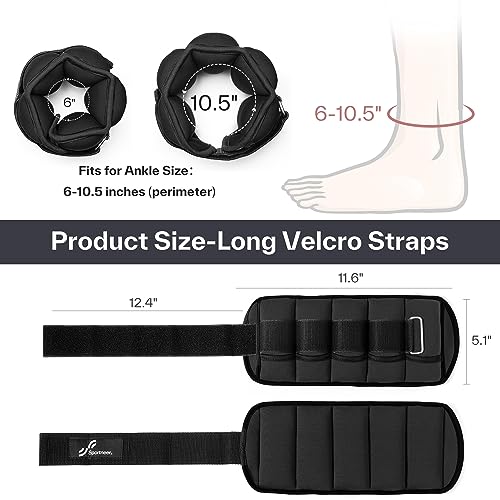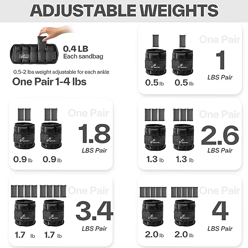 Sportneer Adjustable Ankle Wrist Weights for Men Women Kids, Adjustable Leg & Cuff Weight Straps for Fitness, Walking, Running, Aerobics, Yoga, Gym | 2 lbs for Each Ankle, 1 Pair Total Weight 4 lbs