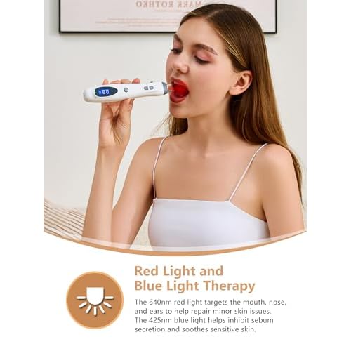 RED & BLUE LIGHT THERAPY: The pointer plus acupuncture pen with 640nm red light and 425nm blue light to help repair minor skin concerns, reduce inflammation, and calm sensitive skin