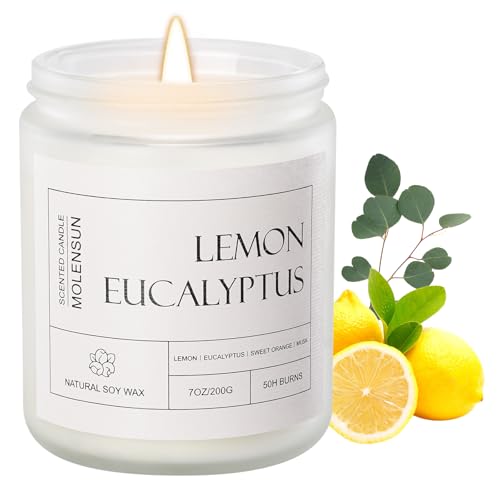 Lemon Eucalyptus Scented Candles, Mother’s Day Gifts, Aromatherapy Jar Candle, 7 oz Long Lasting Candles, Soy Wax Candle Gift for Women