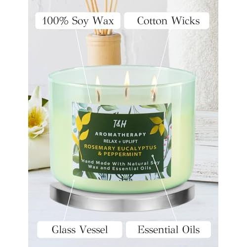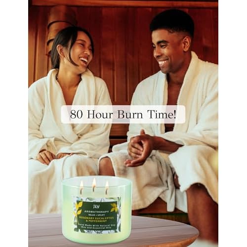 🫶 Crafted to Soothe Your Senses: Hand poured and made with premium ingredients, our Rosemary Eucalyptus and Peppermint scented candle is part of a thoughtfully curated collection of aromatherapy inspired scents, designed to bring a sense of calm and clarity to your space. For best results, always light all three wicks at the same time and allow the wax pool to reach the edges of the jar on the first burn (2 to 3 hours) to prevent tunneling. This ensures a long lasting, consistent performance, making it a wonderful choice for enhancing everyday moments with soothing comfort and a touch of indulgence.