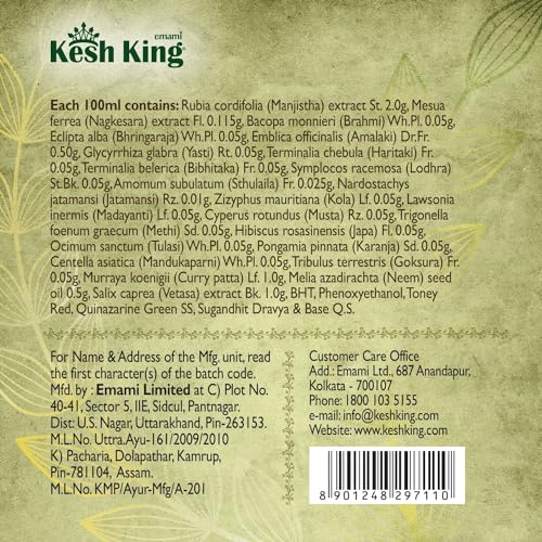 Kesh King Ayurvedic Scalp & Hair Oil is a proprietary medicinal preparation to reduce hair fall and increase the growth of new hair. It is a natural and herbal oil consisting of 21 Ayurvedic herbs like Bhringraja which enhance hair growth. Amalki which gives strength to hair, Methi which prevents hair loss, Jatamansi which prevents greying of hair, etc. Kesh King is clinically proven to be 2X more effective than other ayurvedic oils and presents as a complete hair care solution by reducing hair fall, enhance the growth of new hair, reduces dandruff, and prevents greying of hair. It comes with a root comb for deeper and proper application of hair oil. Visible results can be seen with regular use of Kesh King Hair Ayurvedic Hair Oil for 3 months.