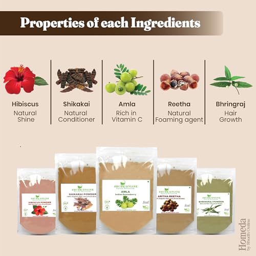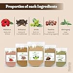 PERFECT COMBINATION for HAIR PACK: Combination of awla rithaa sikhakai hibiscus bhringraj powder hair pack might help with hair problems. AMLA: Rich source of vitamin, helps hair growth, SHIKAKAI and REETHA Soap Nuts for hair might nourish hair