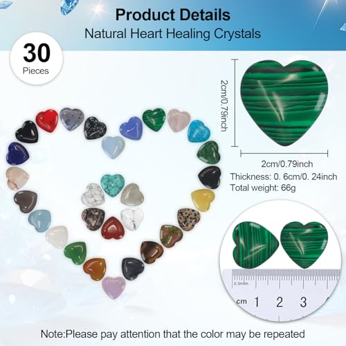 Healing Crystals,Virekm 30PCS Heart Healing Crystals Amethyst Heart Love Stones Set Palm Thumb Gemstones Chakra Reiki Balancing Gifts for Men Women (Colorful – 30 PCS)
