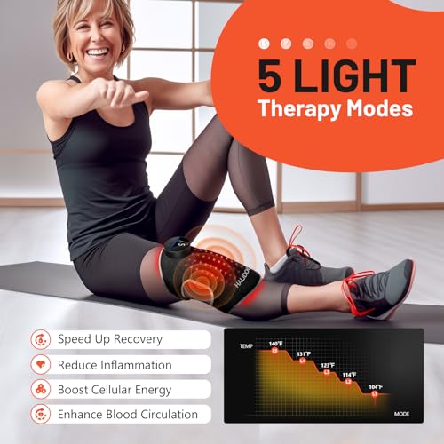 HALIDODO Red Light Therapy & Vibration Massage Knee Brace – Wireless Rechargeable Controller, 660nm&850nm Red Light Therapy Heated Device for Knee/Joint/Elbow/Shoulder Pain Relief, Faster Recovery