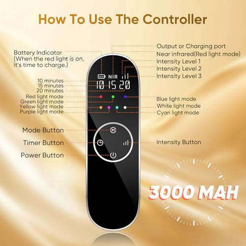 ⏱️ Rechargeable Remote with Adjustable Timer The included 3000mAh rechargeable remote makes operation effortless. Set sessions to 10, 15, 20 minutes with a simple button press. The device automatically shuts off when the timer ends. For best results, use 3–4 times a week, 10-20 minutes per session.