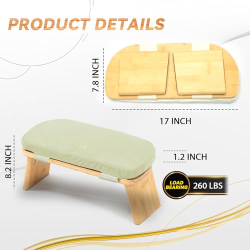 🧘♂️【100% Natural Bamboo】 This folding meditation bench is made of 100% sustainable bamboo with a durable, machine-washable cotton case for extra protection. Folding meditation bench is constructed with durability and strength, which has a maximum load-bearing capacity of 260 lbs. Use with or without cushion based on what fits you best.