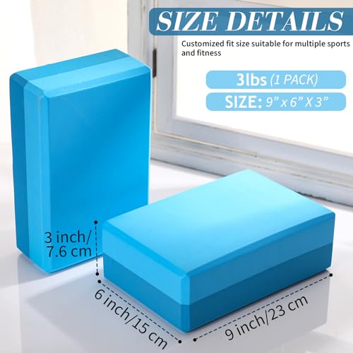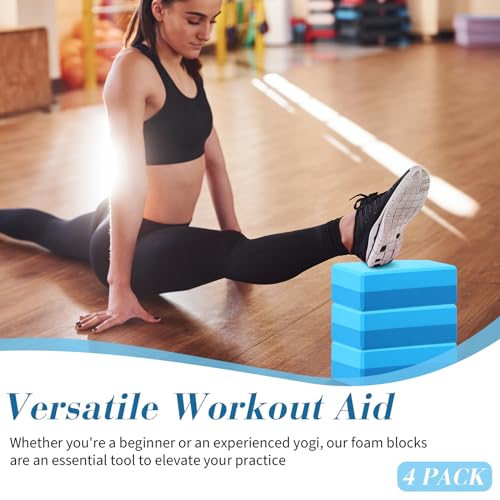 Liliful 4 Pcs Yoga Blocks Bulk EVA Foam Exercise Yoga Brick Soft Non Slip Surface Foam Blocks High Density Yoga Blocks to Improve Strength, Balance Lightweight Yoga Brick 9”x6”x3”(Blue)