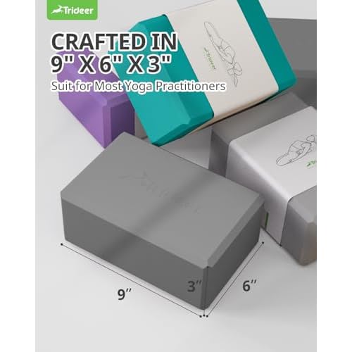 Trideer 9″x6″x3″ Yoga Blocks, High Density EVA Foam Blocks 2 Pack, Supportive, Lightweight & Odor Resistant, Yoga Essentials and Accessories for Yogi & Yogini