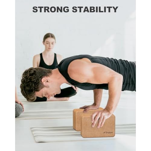 Trideer Cork Yoga Blocks, 2 Pack Natural Cork Blocks, High Density with Non Slip Surface, Eco-Friendly Accessories and Ideal for Yoga, Pilates, Stretching