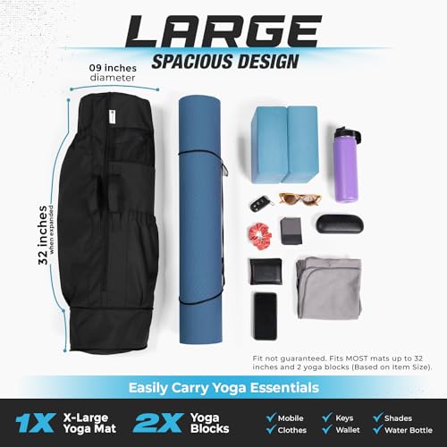 MAGNILAY Yoga Mat Bag – for Women and Men, Yoga Bag with Pockets and Adjustable Strap, Yoga Mat Carrier, Fits Mats Blocks and Yoga Accessories for Workouts, (32”L x 9” Diameter)