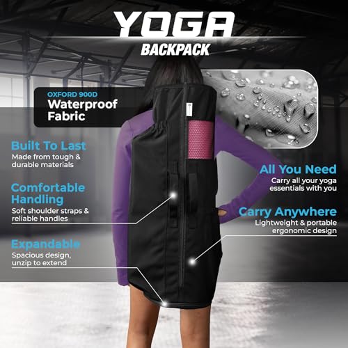 DURABLE AND WATER-RESISTANT : Made from high-quality 900D oxford material, our gym bag is water-resistant and built to withstand daily use. This yoga mat gym bag has been rigorously tested for durability, ensuring long-lasting performance.