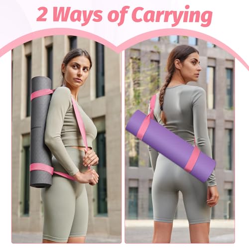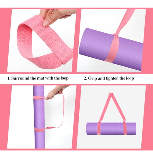 Grevosea Adjustable Yoga Mat Strap, Yoga Strap for Carrying Mat Thick and Wide Yoga Mat Carrier with Hook and Loop Closure for All Mat Sizes Comfortable and Durable Pink – Mat Not Included