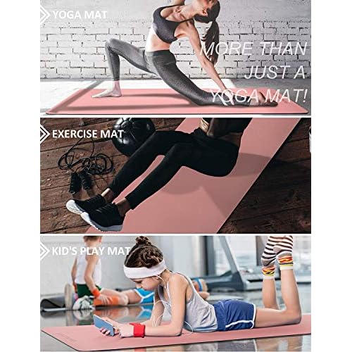 â–¨ AMPLE CUSHIONING & SPACE — 1/3-Inch thick yoga mat provides more cushioning and stability for your body than a thin yoga matt and is safer and more comfortable. It is perfect for practicing balance postures, back support during inversions, and other yoga postures! The size of 72”x24”x1/3″ large yoga mat can satisfy all yoga, pilates, and general floor exercise needs for women and men!
