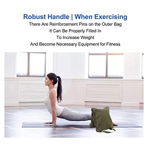 Solid Handle: The green canvas yoga sandbag features a solid handle that allows for easy and secure gripping. Additionally, the outer bag is reinforced with a pin, making it suitable for a variety of purposes beyond yoga and Pilates, such as resistance training or weightlifting exercises.