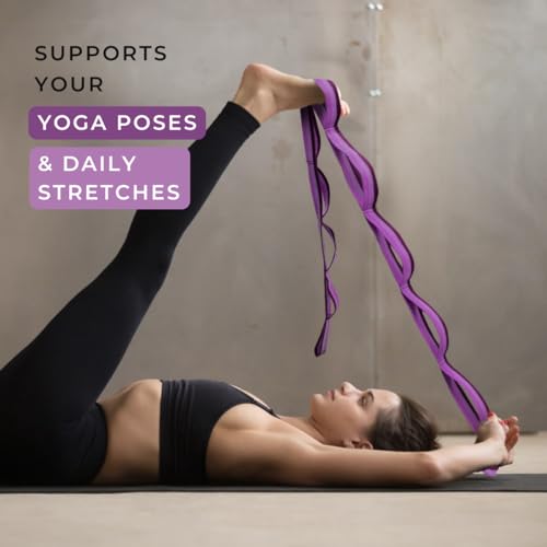 California Yoga Strap | Yoga Belt with Loops | 12 Multi Loop & Non-Elastic | Stretching Strap | Gym Workout & Exercise Bands | Physical Therapy | Improves Sitting Posture for Women & Men