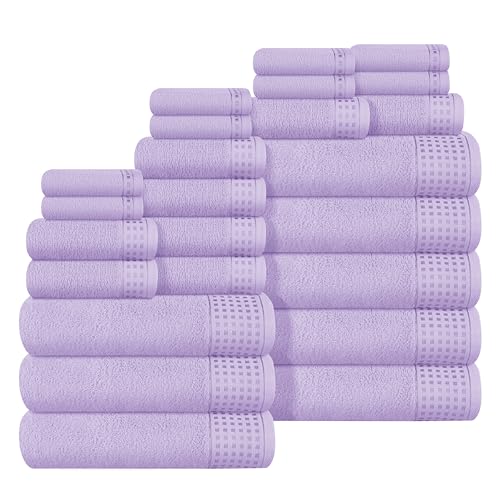 GLAMBURG Towels for Bathroom, 100% Cotton Towel Set, Contains 8 Soft Bath Towel, 8 Hand Towels, 8 Wash Cloths – Compact Absorbent Lightweight & Quickdry – 24 Piece Bathroom Towel Set – Purple
